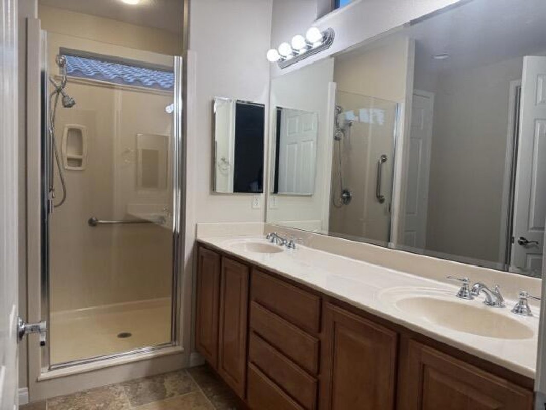 Move in Ready long-term lease opportunity in the desirable Sun City Shadow Hills 55+ active adult community. This popular San Vicente floor plan offers 2 bedrooms, 2 bathrooms, plus a den/office, with spacious indoor and outdoor living. The open-concept layout features a dining area, a full kitchen open to the family room, and an inviting space for everyday living and entertaining. The primary suite includes a walk-in closet, dual vanities, a walk-in shower, and a private powder room. A secondary bedroom and separate den provide flexible space for guests, an office, or hobby room. The full second bathroom features a tub/shower combo. Additional highlights include an interior laundry room, all appliances included, and a two-car garage. The home is move-in ready and offers access to Shadow Hills' exceptional amenities, including two clubhouses with state-of-the-art fitness centers, indoor and outdoor pools, bocce courts, billiards, lighted sports courts, two golf courses, an on-site restaurant, and a wide variety of clubs and social activities. Available for immediate move-in. Please use rent spree screening https://apply.link/QuArSR0