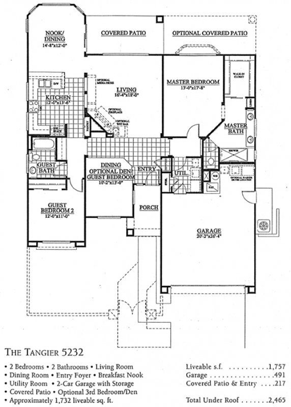 Sun City Palm Desert - Tangier. This extended version of the popular Tangier floor plan offers thoughtful upgrades inside and out, including a guest bedroom nearly double its original size with French doors opening to the private front courtyard. Most furniture available outside of escrow. Perched high above the 4th fairway of the San Gorgonio Course, the west-facing rear yard captures sweeping panoramic views of the golf course and multiple mountain ranges. Designed for outdoor living, the rear yard features an expansive decorative concrete patio, built-in BBQ island, Alumawood patio cover with electric solar shade, and lush landscaping highlighted by mature citrus trees. The home showcases excellent curb appeal with stacked stone accents, decorative concrete hardscape, and a gated front courtyard. Inside, 10-foot ceilings and transom windows create a light, open atmosphere. Diagonally laid tile flooring extends throughout the home, excluding the bedrooms and living room. A half wall between the kitchen and living room enhances the open great-room design. The kitchen is well appointed with Corian countertops with rounded edges, recipe windows for natural light, a breakfast bar, stainless steel appliances, and raised-panel maple cabinetry with under-cabinet lighting and pull-out shelving. Matching maple cabinetry continues in the bathrooms. A spacious dining area with sliding glass doors opens to the rear patio. French doors off the main hallway lead to a den or office with custom built-in cabinetry. The primary suite features a bay window, an oversized walk-in closet, and an en-suite bathroom with dual sinks, cultured marble surfaces, and a large stall shower. The guest bathroom includes a tub/shower combination. The extended guest bedroom offers courtyard access through French doors and a mirrored wardrobe closet. The laundry room includes built-in storage, while the extended two-car garage provides a golf cart nook, built-in cabinetry, and an epoxy-coated floor.