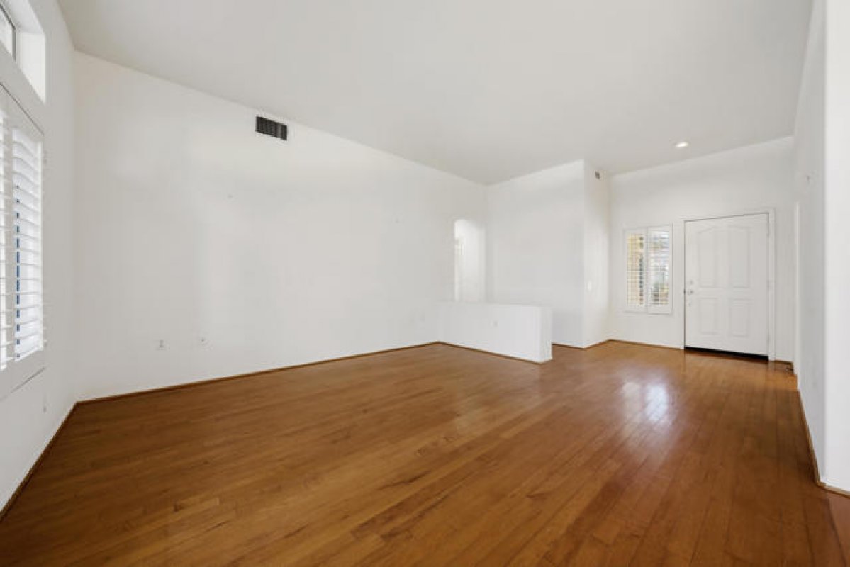 Sun City Palm Desert - Garnet. Ideally located in the heart of Sun City and just moments from both the Mountain View and Sunset View Clubhouses, this sought-after Garnet model offers low-maintenance living with HOA-maintained landscaping, roof, and stucco. The home features a spacious north-facing rear patio overlooking a lush greenbelt, plus a welcoming front courtyard that adds both charm and functionality. Inside, shutters are found throughout, and hardwood flooring extends through most of the home. The living room opens directly to the rear patio through a sliding glass door. The kitchen offers corian countertops and a convenient pantry. The primary suite includes a bay window and mirrored wardrobe closet, along with an ensuite bath featuring dual sinks and a glass-enclosed stall shower. A guest bedroom is served by a full bath with a tub/shower combination. The laundry room is located inside for added convenience. Additional highlights include a spacious two-car garage and a newer AC installed in 2019.