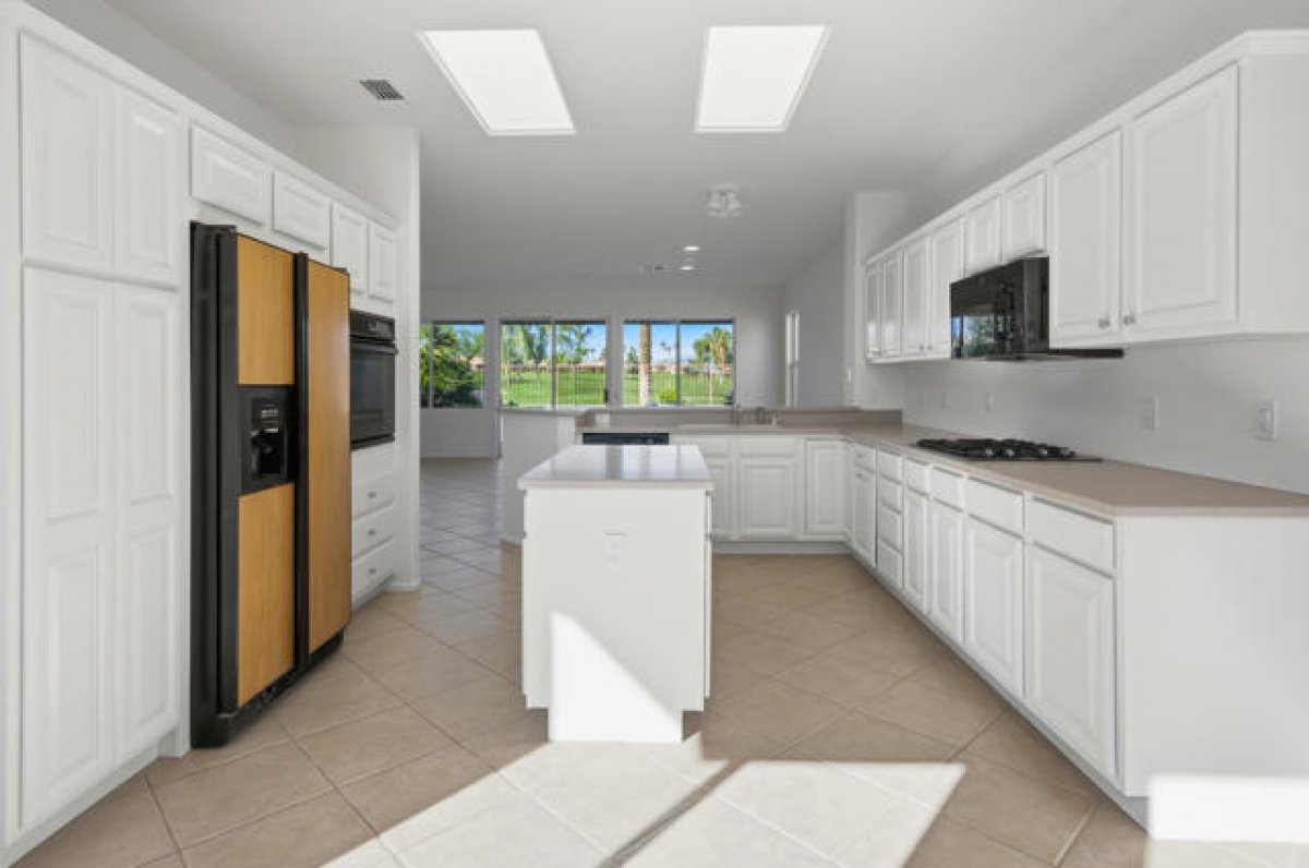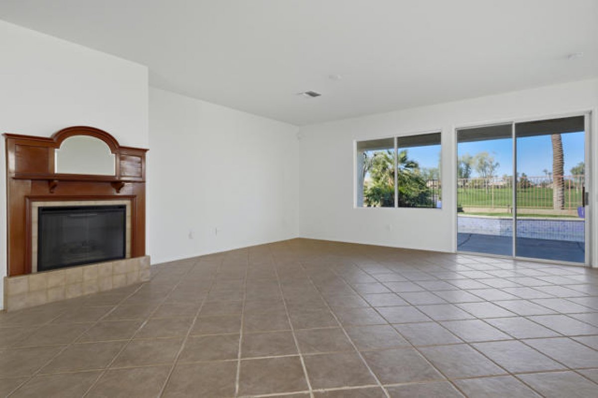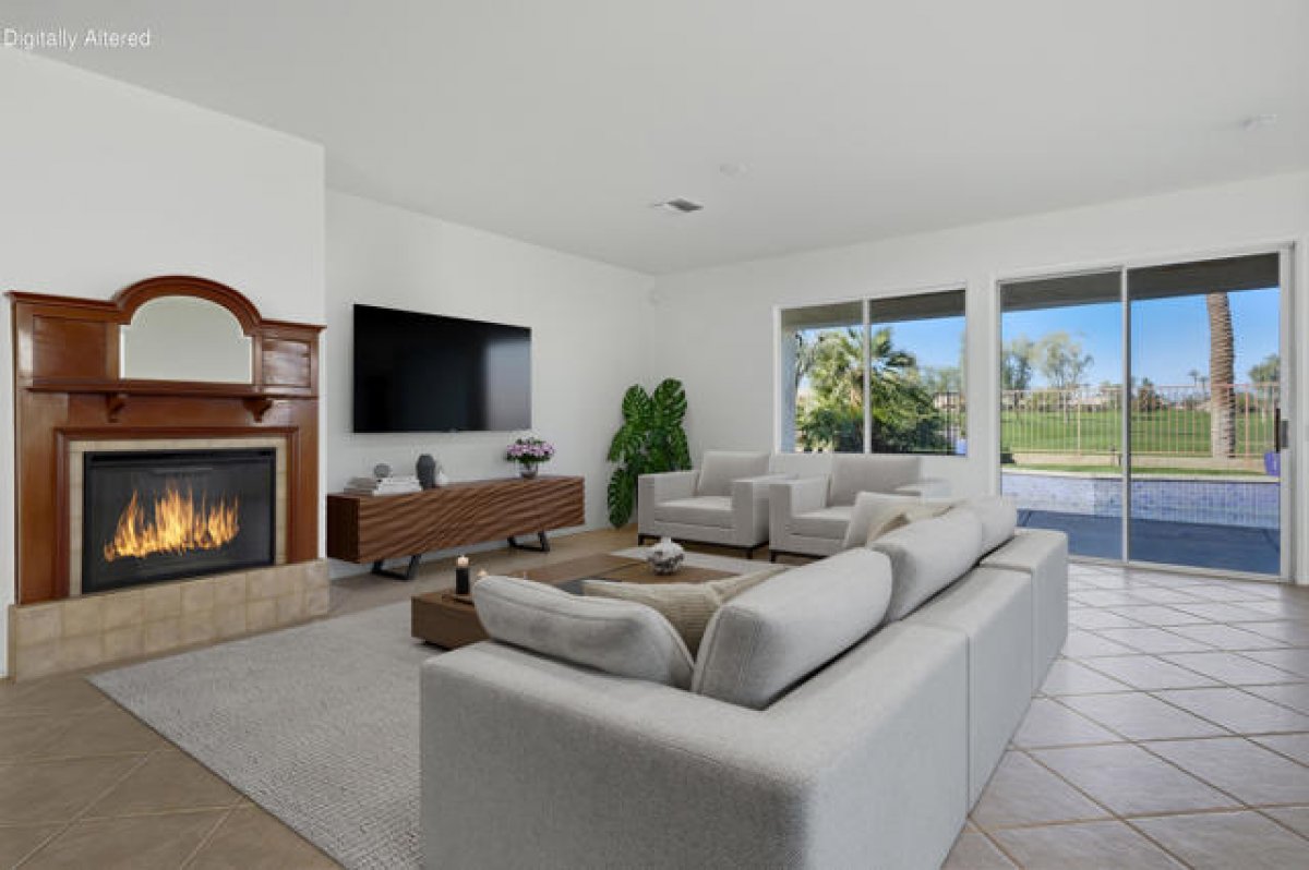 Sun City Palm Desert - St. Croix. Ideally positioned at the end of the 16th fairway, this highly sought-after St. Croix model offers sweeping golf course views and dramatic mountain panoramas, including Mount San Jacinto and Mount San Gorgonio. Sun City's most popular floor plan includes 2 bedrooms, 2 bathrooms, a den, a bonus hobby room, and an extended 2+ golf cart garage. Priced to reflect its outstanding location, views, and solid condition, this home presents a rare opportunity for buyers to add their own updates and finishes over time--creating a personalized retreat without paying a premium for someone else's renovations. The spacious rear yard is built for outdoor living, featuring an extended salt-finished patio, BBQ island, and pool and spa--perfect for relaxing or entertaining while enjoying the exceptional views. A front courtyard and desert landscaping add inviting curb appeal. Inside, the home has been freshly painted and well maintained, with tile flooring throughout the main living areas and newly installed carpet in the bedrooms, den, and hobby room. The kitchen features Corian countertops, a chef's island, breakfast bar, wall oven, and raised-panel maple cabinetry, which continues into the bathrooms. The great room includes an electric fireplace and sliding door that opens to the rear patio. French doors lead to the den, with a pocket door providing access to the hobby room. The primary suite offers patio access and a large walk-in closet with custom built-ins and mirrored doors, while the en suite bath features dual sinks and a stall shower with textured glass. The guest bath includes a shower/tub combination with cultured marble surfaces. Additional highlights include a guest bedroom with mirrored wardrobe doors, a laundry room with utility sink and built-in storage, and an extended 2+ golf cart garage with its own air conditioning and built-in cabinetry. The HVAC system was replaced in 2022.
